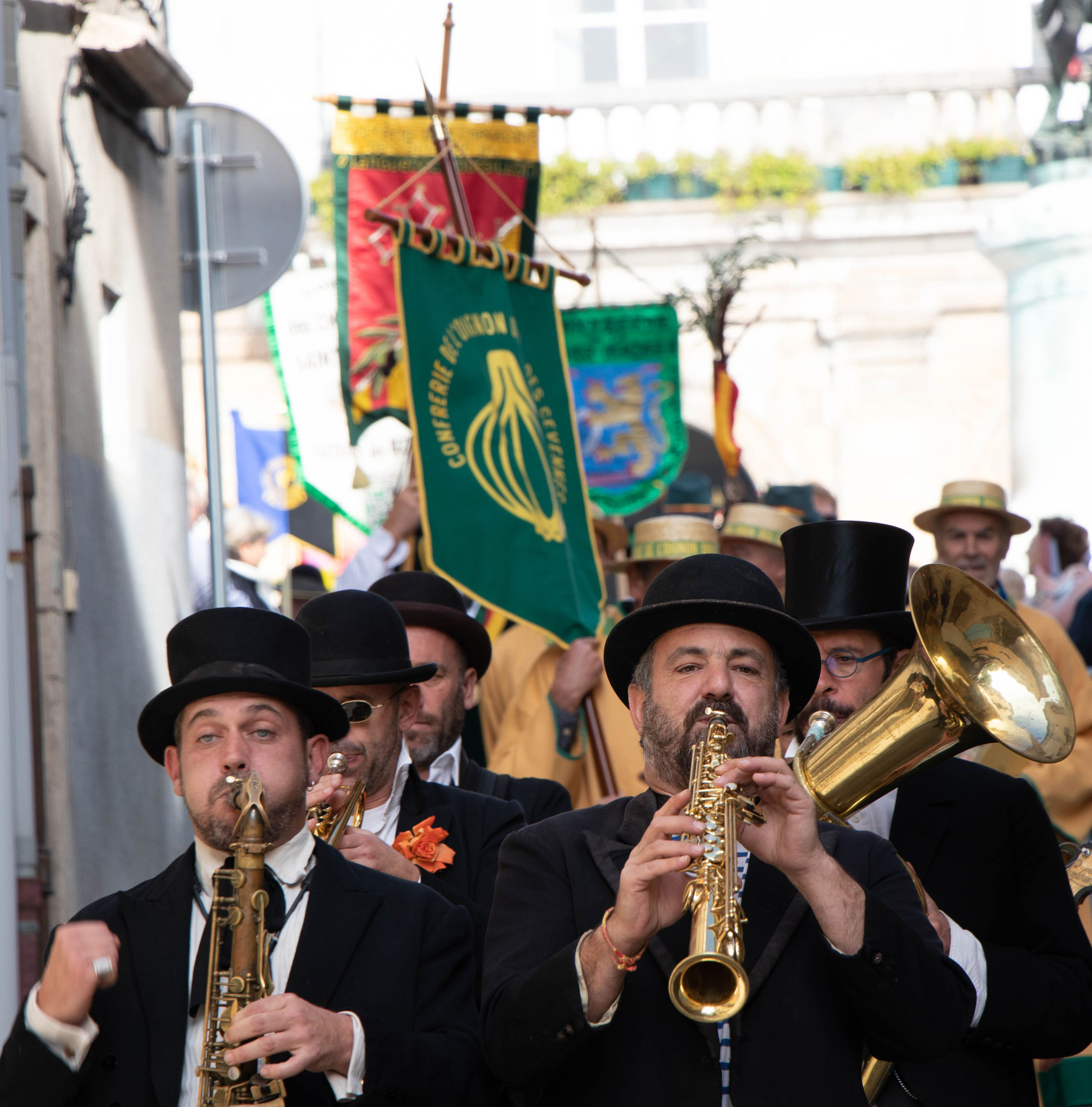 De 9h30 à 18h, le centre du Vigan s’anime avec un marché géant de 120 producteurs, éleveurs et artisans, organisé autour d'une spectaculaire pyramide de pommes et d'oignons. L’oignon doux des Cévennes AOP et la pomme reinette du Vigan, stars de la fête, sont proposés à prix "spécial Foire" durant toute cette journée.