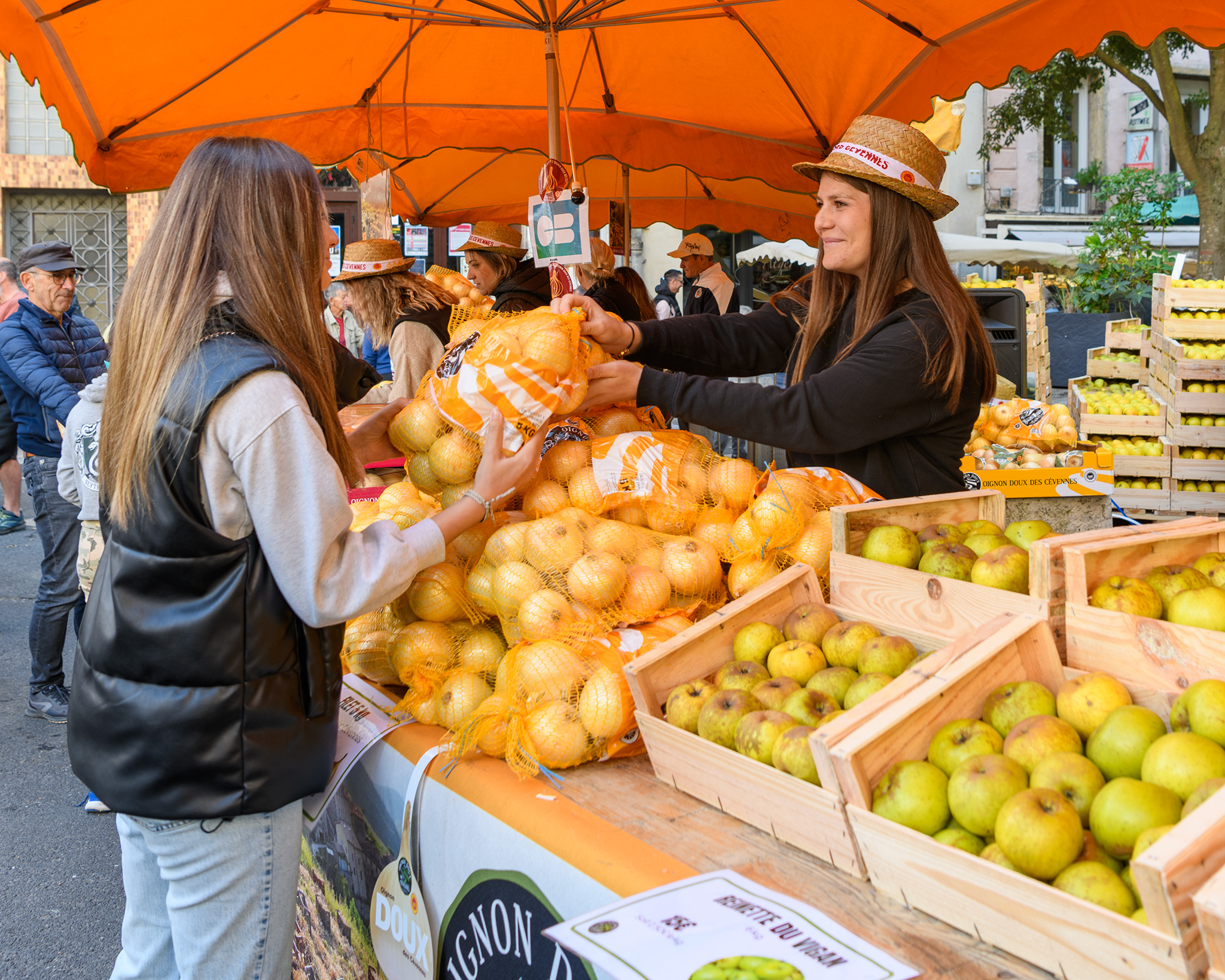 • Vente exclusive de l’oignon doux des Cévennes AOP et de la Pomme reinette du Vigan par la Coopérative Origine Cévennes – Place du Quai